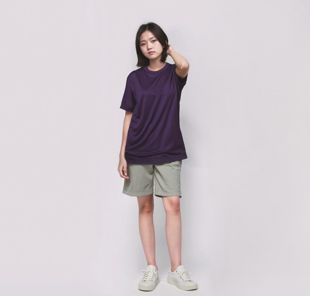 銀イオン(Ag+)による抗菌防臭加工「ポリジン・ステイフレッシュ」。汗のニオイや部屋干し臭の原因となる菌の成長を抑制し、ニオイの発生を防いでくれる吸水・速乾性にも優れたTシャツ。
