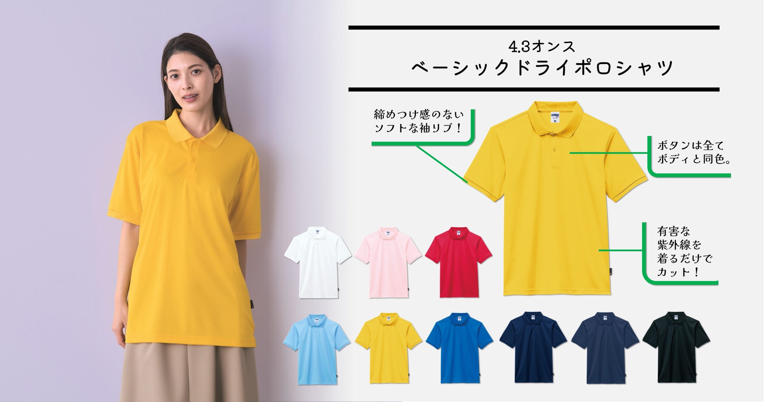 機能性素材の「ポリジンドライポロ」シリーズ。着用シーンを選ばないベーシックモデル!